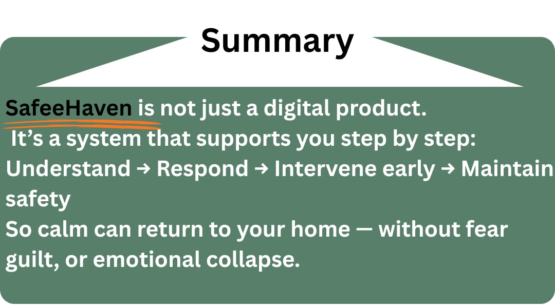 Safeehaven is built with simple steps and ready-to-use words — made for moments when you’re tired, stressed, and overwhelmed.