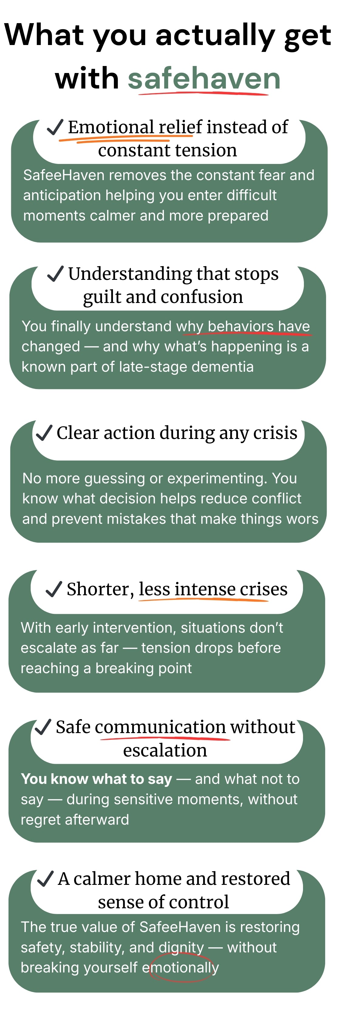 Most approaches try to change behavior. Safeehaven starts with the real cause — fear and confusion — and gives you a complete system, not scattered advice.